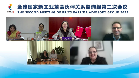2022年4月28日至29日,中方以视频方式主持召开金砖国家新工业革命伙伴关系咨询组第二次会议,巴西经济部、俄罗斯工业和贸易部、印度商业和工业部、南非贸易工业和竞争部代表与会。
