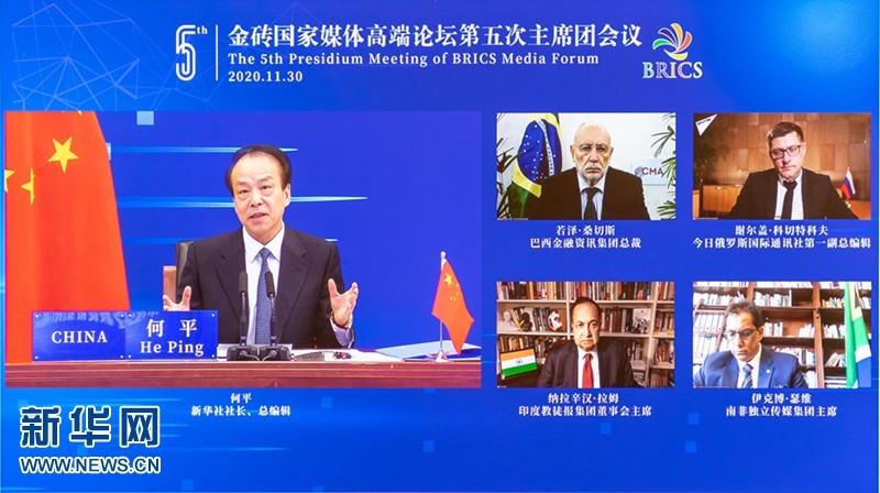 金砖国家媒体高端论坛第五次主席团会议30日晚以视频方式举行,各主席团成员一致承诺携手努力,进一步推动论坛机制发展与完善,面向后疫情时代推动和加强金砖国家媒体交流与合作。
